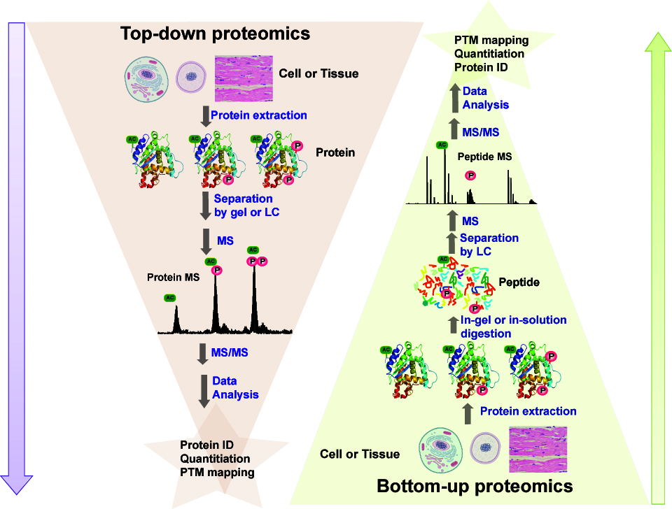 ![]() Figure 1. Schematic illustration of the difference between protein-based top-down and peptide-based bottom-up proteomics.6 |